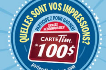 Donnez vos commentaires pour courir la chance de gagner une CARTE Tim de 100 $.