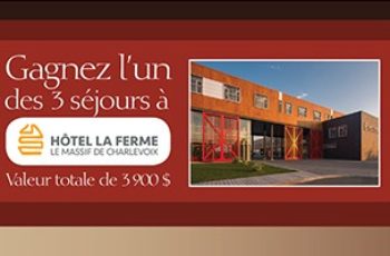Gagnez l’un des 3 séjours pour deux (2) personnes à l’hôtel La Ferme au Massif de Charlevoix.