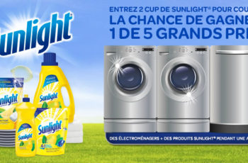 Entrez 2 CUP de tout produit Sunlight® Lessive ou Vaisselle pour courir la chance de gagner 1 de 5 grands prix.