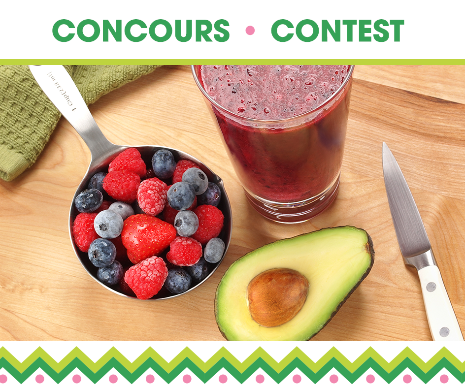 Courez la chance de gagner un superbe mixeur, d’une valeur de 200$! Pour participer, partagez votre recette préférée de smoothie à l’avocat sur la page Facebook des Avocats du Mexique Canada.
