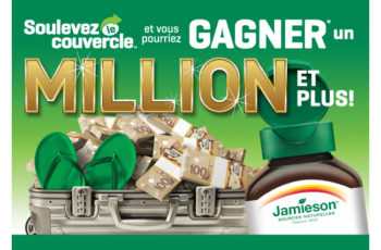 Inscrivez-vous et courez la chance de gagner un Grand Prix de 1 000 000 $, 1 des 3 Vacances de rêve, ou 1 des 4 Vitamines Jamieson pour un an!