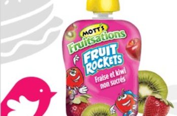 Cette semaine, le Club des bancs d’essai de ChickAdvisor offrent la chance à 200 familles canadiennes membres de tester les deux nouvelles saveurs de goûters aux fruits Fruit Rockets de la gamme Fruitsations* de Mott’s : Fraise et kiwi non sucrés et + légumes, baies mélangées et carottes.