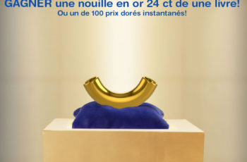 Vous pourriez GAGNER une nouille en or massif de 24 carats de une (1) livre! Ou l’un des 555 prix secondaires instantanés, chacun consistant en un article promotionnel KD Or.
