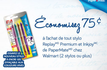 Économisez 0,75$ à l’achat de tout stylo Replay Premium et Inkjoy de PaperMate chez Walmart (2 stylos ou plus).