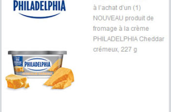 Économisez 1 $ à l’achat d’un (1) NOUVEAU produit de fromage à la crème PHILADELPHIA Cheddar crémeux, 227 g avec ce coupon rabais sur webSaver.ca.
