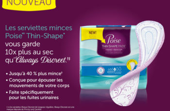 Inscrivez-vous pour recevoir les coupons de la marque Poise et économisez 2,00 $ à l’achat d’un (1) emballage de serviettes ou de protège-dessous Poise.