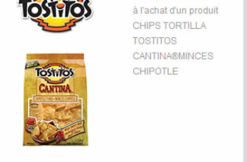 Économisez 1 $ à l’achat d’un produit CHIPS TORTILLA TOSTITOS CANTINA MINCES CHIPOTLE.