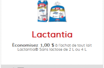 Économisez 1,00 $ à l’achat de tout lait Lactantia® Sans lactose de 2 L ou 4 L avec ce coupon rabais UtiliSource.ca.