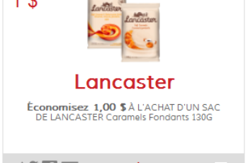 Économisez 1,00 $ À L’ACHAT D’UN SAC DE LANCASTER Caramels Fondants 130G avec ce nouveau coupon rabais UtilitSource.