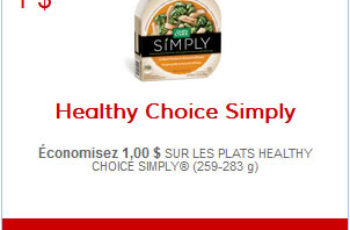 Économisez 1,00 $ SUR LES PLATS HEALTHY CHOICE SIMPLY® (259-283 g) avec ce nouveau coupon-rabais sur UtiliSource.ca.