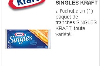 Économisez 1,00 $ a l’achat d’un (1) paquet de tranches SINGLES KRAFT, toute variété (KraftCanada.com).