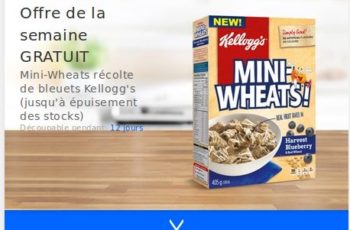 GRATUIT Mini-Wheats récolte de bleuets Kellogg’s (jusqu’à épuisement des stocks). Disponible avec l’application COUPGON.