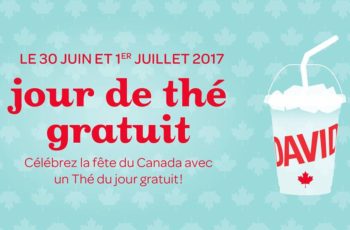 Vous n’avez qu’à faire un saut dans une boutique Les Thés DAVIDsTEA le 30 juin et 1er juillet 2017 pour recevoir le vôtre – aucun achat requis.