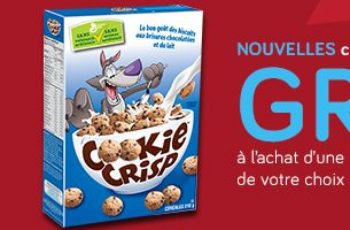 Obtenez une boîte de céréales Cookie Crisp (318 g) GRATUITES à l’achat d’une boîte de céréales pour enfants General Mills de votre choix avec ce nouveau coupon rabais à imprimer avec Walmart.ca.