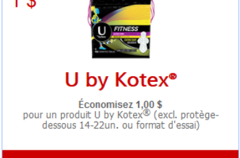 Économisez 1,00 $ pour un produit U by Kotex® (excl. protège-dessous 14-22un. ou format d’essai) avec ce nouveau coupon rabais à imprimer sur UtiliSource.ca