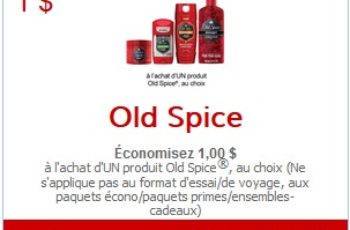 Économisez 1,00 $ à l’achat d’UN produit Old Spice®, au choix (Ne s’applique pas au format d’essai/de voyage, aux paquets écono/paquets primes/ensembles-cadeaux).