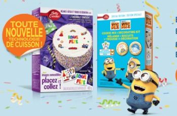 Recevez deux contenants de glaçage Betty Crocker 340-450g GRATUITEMENT lorsque vous achetez un nouveau mélange à biscuits et trousse de décoration Betty Crocker Détestable Moi 3 ou la nouvelle trousse à gâteau festif 340-423g avec le nouveau coupon rabais à imprimer sur le portail Walmart de Save.ca