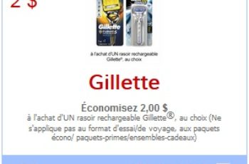 Économisez 2,00 $ à l’achat d’UN rasoir rechargeable Gillette®, au choix (Ne s’applique pas au format d’essai/de voyage, aux paquets écono/ paquets-primes/ensembles-cadeaux)