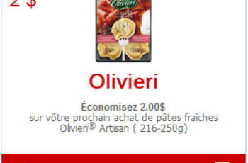 Économisez 2.00$ sur vôtre prochain achat de pâtes fraîches Olivieri® Artisan ( 216-250g) avec ce nouveau coupon rabais à imprimer sur UtiliSource.ca.