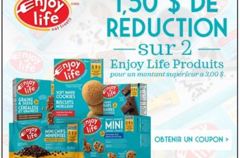 Économisez 1,50 $ à l’achat de deux (2) produits Enjoy Life Foods de plus de 3 $ avec ce nouveau coupon-rabais à imprimer.