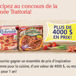 Vous pourriez gagner un ensemble de prix d‘inspiration européenne pour la cuisine, d’une valeur de 4000 $, ou encore de la pizza pour 1 an! Le concours se termine le 7 septembre 2015 Participez >>