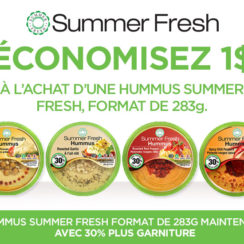 Économisez 1,00 $ à l’achat d’une hummus Summer Fresh, format de 283g avec ce coupon rabais sur Save.ca (Poste/Impression). Date D’expiration: 2016-08-31 Cliquez ici >>
