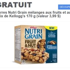 GRATUIT Barres Nutri Grain mélanges aux fruits et aux noix de Kellogg’s 170 g (valeur 3,99 $) (jusqu’à épuisement des stocks). Disponible avec l’application COUPGON. Date d’expiration: 2017-02-22 Cliquez ici >>