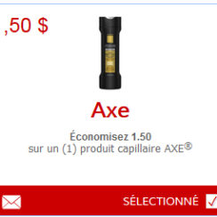 Économisez 1.50 $ sur un (1) produit capillaire AXE avec ce coupon-rabais à imprimer sur UtiliSource.ca Limite de deux impressions par ordinateur. Cliquez ici >>
