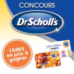 Pour participer au concours, procurez-vous un produit de la gamme Dr.Scholl’s, à l’exception des produits électriques, dans les succursales Uniprix participantes pendant la période allant du 11 juin au 8 juillet 2015, ET allez remplir le formulaire de participation en ligne (au www.uniprix.com/fr/concours) en y indiquant …