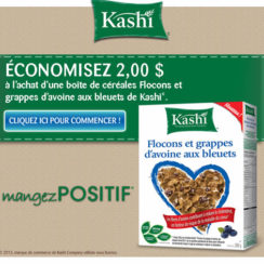 Économisez 2$ à l’achat d’une boîte de céréales Flocons et grappes d’avoine aux bleuets de Kashi. (Facebook) Cliquez ici pour commencer >>