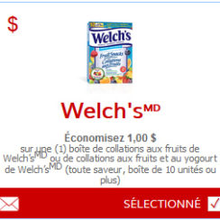 Économisez 1,00 $ sur une (1) boîte de collations aux fruits de Welch’s ou de collations aux fruits et au yogourt de Welch’s (toute saveur, boîte de 10 unités ou plus) avec ce coupon rabais à imprimer sur le site SmartSource.ca. Limite de deux impressions par …