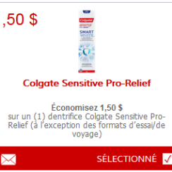 Économisez 1,50$ sur un dentifrice Colgate Sensitive Pro-Relief (à l’exception des formats d’essai/de voyage). Économisez 1,50 $ sur un (1) dentrifice Colgate Sensitive Pro-Relief Smart White de 75 mL ou un (1) dentrifice Colgate Sensitive Pro-Relief de 120 mL (à l’exception des formats d’essai/de voyage) chez Pharmaprix. …